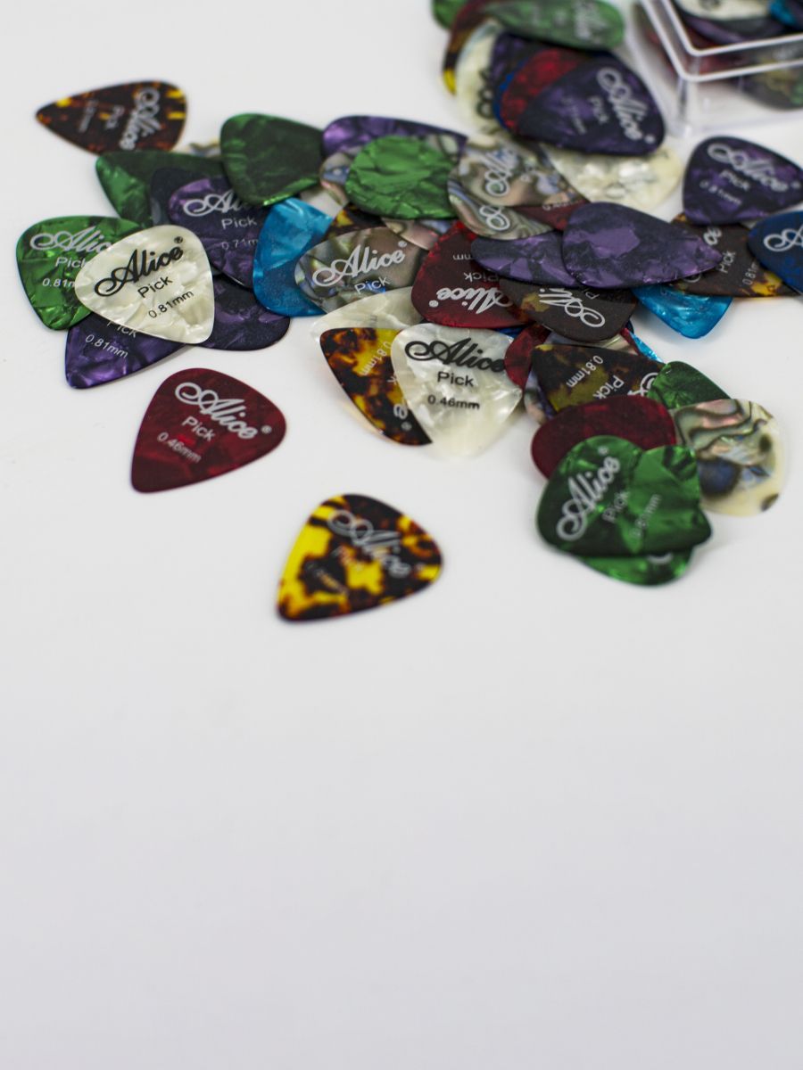 Alice AP-100A - профессиональный набор медиаторов премиум-класса, созданный для музыкантов, ценящих качество и разнообразие в игре. Комплект включает 100 медиаторов различных толщин и расцветок, что делает его идеальным выбором как для начинающих, так и для опытных гитаристов.