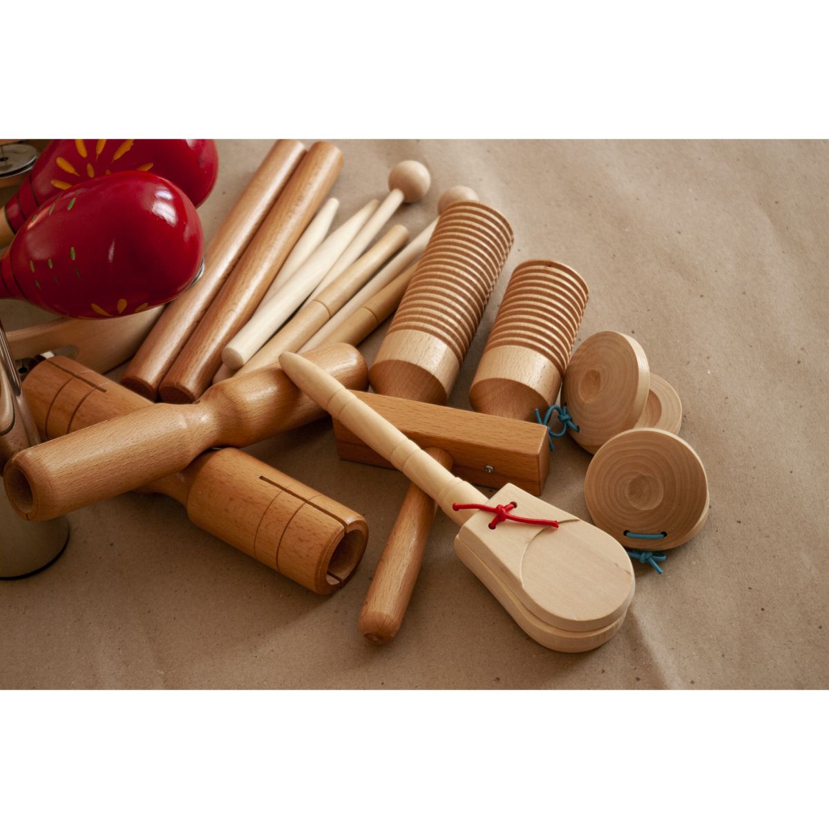 Качественный перкуссионный набор AP Percussion LT17 изготовлен из экологически чистых материалов состоит из 17 предметов. Набор поставляется в прочном чехле. Комплектация: – тамбурин 8'' (2 шт.) – агого (1 шт.) – кастаньеты (1 пара) – кастаньеты на ручке (1 шт) – гуиро (1 шт.) – клавесы (1 пара) – набор треугольников 4'' 5'' 6'' 7'' 8'' (5 шт.) – шейкер металлический (1 шт.) – тон-блок (1 шт.) – двойной тон-блок small (1 шт.) – двойной тон-блок mi (1 шт.) – маракасы деревянные (1 пара) AP Percussion LT17 подойдет детям в качестве первого знакомства с музыкальными инструментами.