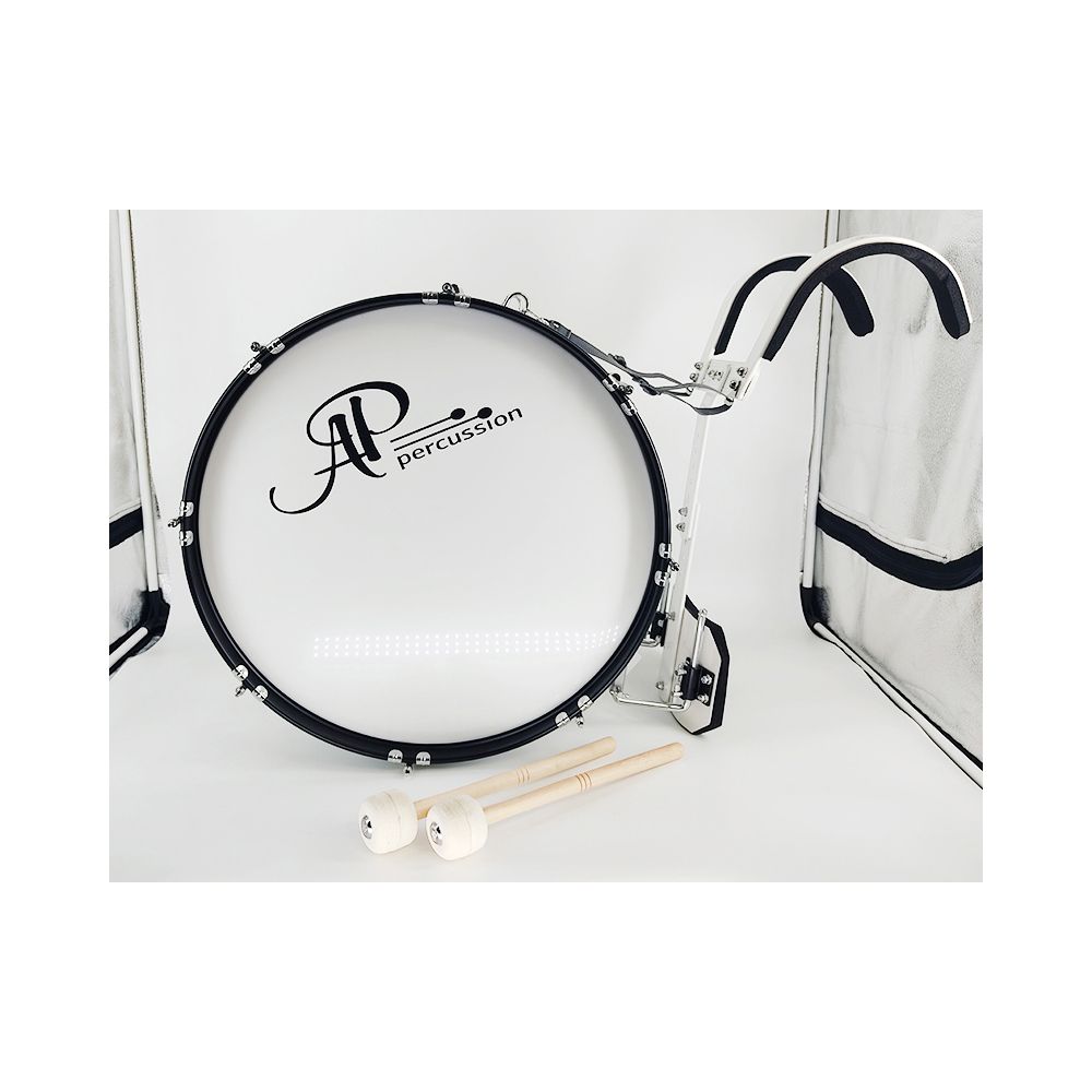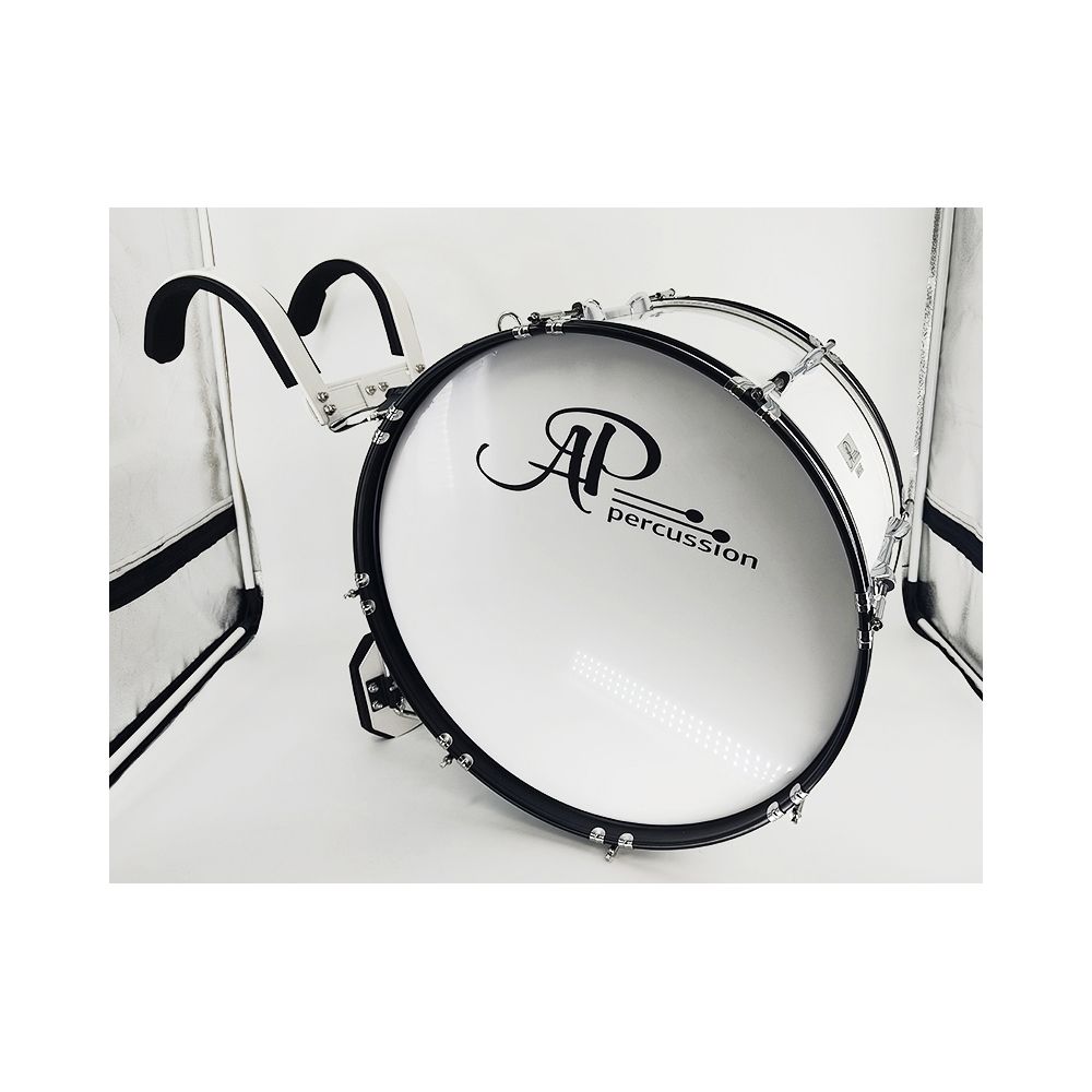 AP Percussion MB-2212 Барабан маршевый большой 22"х12" белый, черная фурнитура с держателем, колотушки