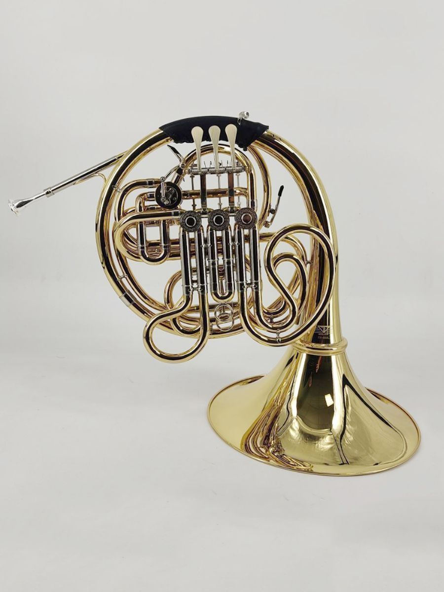 Строй: F/Bb Мензура: 11,89 мм Раструб: 311 мм, съемный Настроечный крон: мельхиор Покрытие: золотой лак Облегченный кейс в комплекте