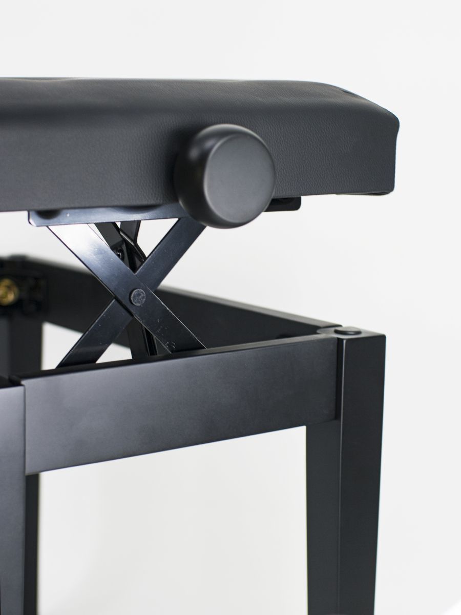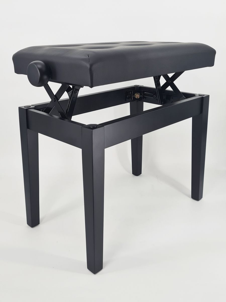 Artist PB-025MBL Банкетка деревянная с регулировкой высоты, цвет черный матовый, кожзам, пуговицы, высота 47-56см