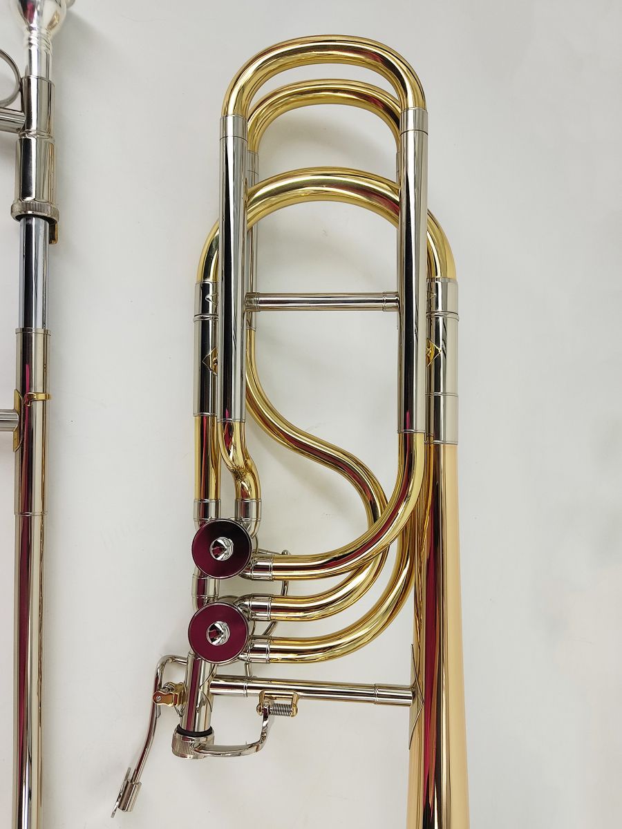 Artist SL-831 Тромбон бас Bb/F/Gb/D, раструб 241 мм, мензура 14.2 мм, настроечный крон мельхиор, кулиса мельхиор, покрытие золотой лак, облегченный кейс в комплекте