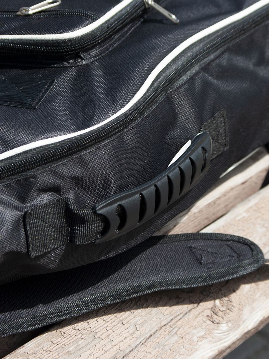 BaggZ AB-41-4 – качественный чехол для акустической гитары 41". Модель надежно защищает инструмент от пыли, температурных перепадов и механических повреждений. BaggZ – это качественные эквалайзеры, прочные чехлы и стильные ремни для гитар. Продукция фирмы изготавливается на крупном китайском заводе. Все товары проходят поэтапный контроль качества, маркируются и успешно поставляются в различные страны мира. Продукция фирмы BaggZ – прекрасное сочетание высокого качества и привлекательной цены. Особенности модели: – прочный синтетический материал – защитный слой – 8 мм, плотность – 600D – большой наружный карман для хранения нот и аксессуаров – накладной карман для струн – дополнительный карман на уровне грифа для хранения коммутации – два регулируемых ремня со смягчающими подкладками – две прочные ручки – стильный логотип на кармане BaggZ AB-41-4 – надежный и качественный чехол по доступной цене.