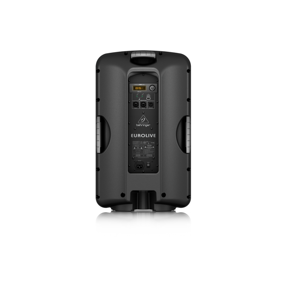 Behringer B15X имеет двухполосную конструкцию, встроенный усилитель 1000 Вт, 24-битный DSP процессор от Klark Teknik, на борту акустической системы 3-канальный цифровой микшер с двумя входами XLR-1/4" и порт USB, к которому можно подключить приёмник беспроводной системы ULM-серии. Встроенный Bluetooth-интерфейс служит не только для стриминга аудио с мобильных устройств, но и для дистанционного управления настройками колонок посредством смартфона или планшета (необходимое для этого приложение будет доступно в версиях для iOS и Android). - усилитель класса D. Мощность (пик) 1000 Вт - 1-дюймовый компрессионный твитер - 15-дюймовый вуфер - частотный диапазон: 50-20 000 Гц - два входа (A и B) комбо для подключения балансного XLR, 1/4 дюйма TRS балансного или 1/4 дюйма TR небалансного разъема - импеданс 33 кОм для балансного и 16 кОм для небалансного - выходной уровень до +22 dBu - выход на балансном разъеме XLR для вывода общего сигнала со всех входов