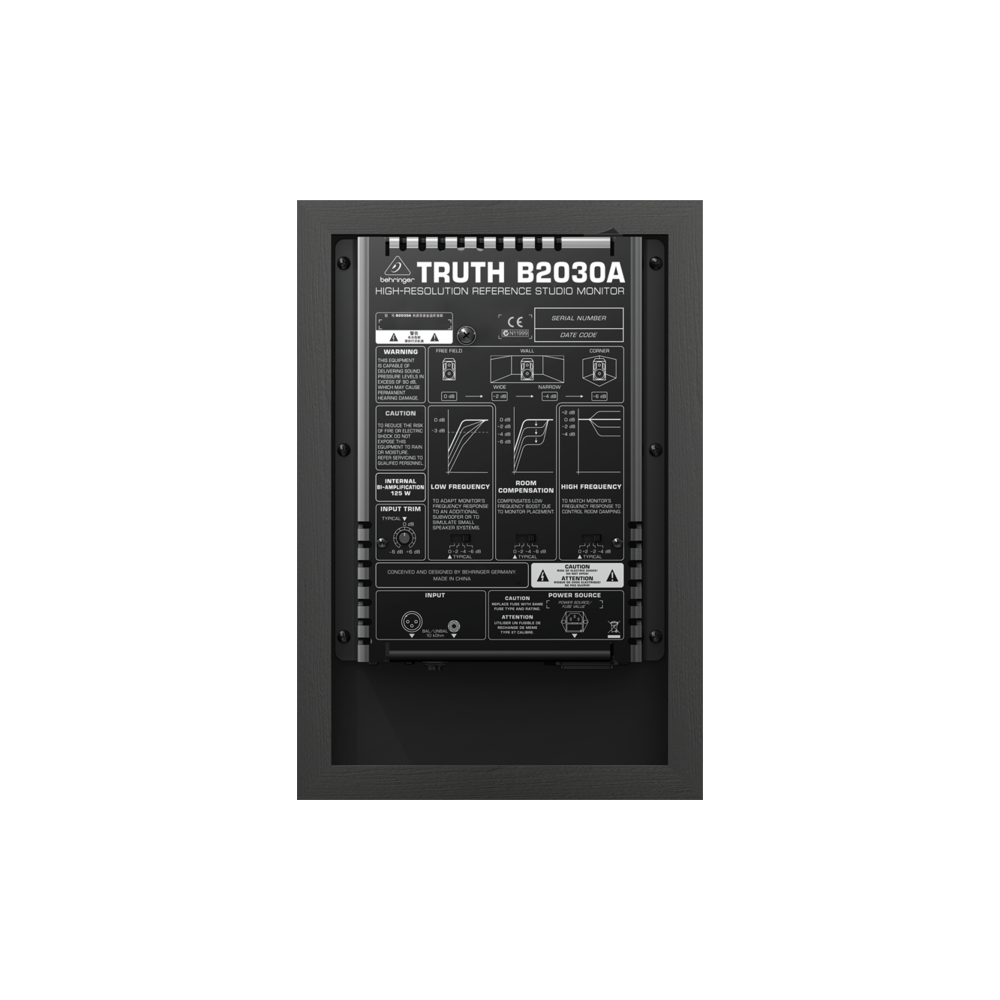Студийные мониторы B2030A оборудованы серво-сбалансированными входами на XLR- и TRS-разъёмах для возможности подключения к различным источниками звука. Благодаря компактным размерам и магнитному экранированию, мониторы TRUTH B2130P можно размещать рядом с видеомониторами, компьютерными дисплеями или цифровыми рабочими станциями. B2030A поставляется в индивидуально подобранных парах с индивидуальными диаграммами АЧХ.