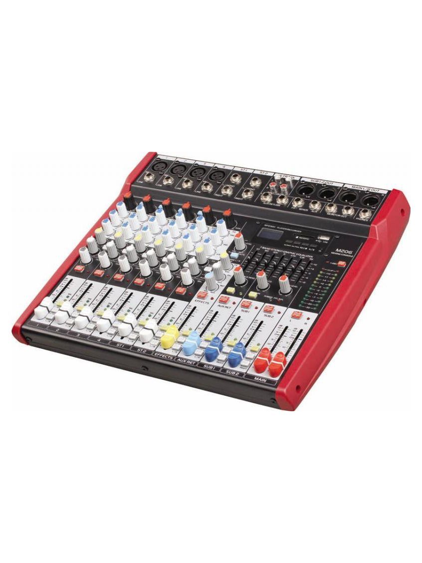 BG M206 Пульт микшерный, 4 моно, 2 стерео, USB/SD MP3 плеер, процессор эффектов, 7 полосный эквалайзер, 2 подгруппы, фантомное питание
