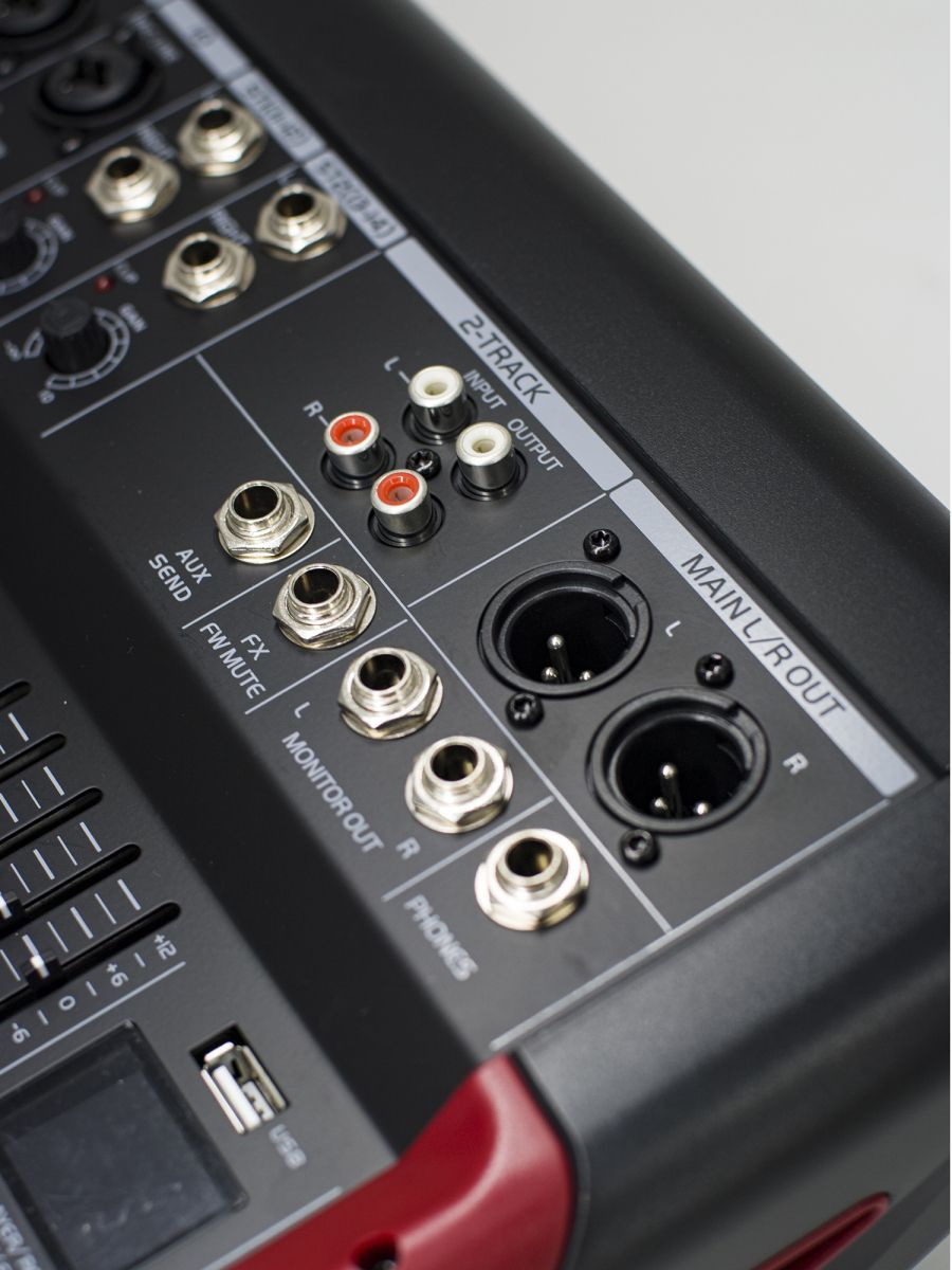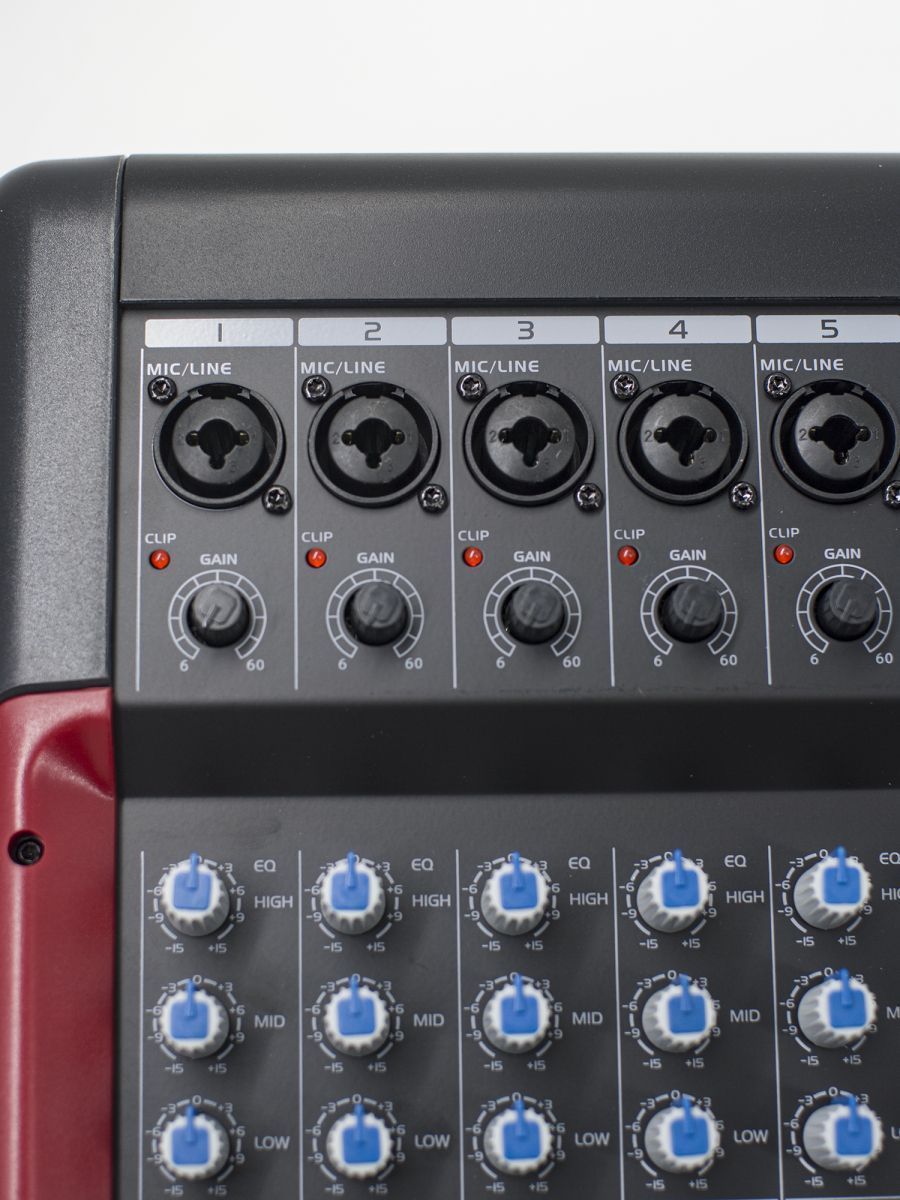 Описание модели: пульт микшерный Количество каналов: 14 Моно входы: 10 Стерео входы: 2 Моно канал: балансный XLR, 2 pin hot, 2 кОм, чувствительность -60 ~ +14 дБн; TRS балансный, tip hot, 10 кОм, чувствительность -40 ~ + 14 дБн; XLR, фантом +48В Стерео канал: TRS балансный, tip hot, 10 кОм, чувствительность -40 ~ + 14 дБн Максимальный входной уровень, дБн: MIC +24, Line +24, Other Line +20 Максимальный выходной уровень, дБн: XLR +26, TRS +20 Подключение по USB: есть Master метры: 12 сегмент -30дБ до CLIP Метры каналов: 1 индикатор сигнала Частотный отклик, Гц: <20 – 30000 (0.5дБ) Искажения (THD+N): <0.01% (Канал для микширования) Перекрестные помехи на частоте 1 кГц, дБ: отключение фэйдера > 85, отключение звука > 85, Inter канал > 82 Эквалайзеры моно каналов, дБ: HF +/- 15дБ, 12кГц, MF +/- 15дБ, 2.5кГц, LF +/- 15дБ, 80Гц Эквалайзеры стерео каналов: HF +/- 15дБ, 12кГц, MF +/- 15дБ, 2.5кГц, LF +/- 15дБ, 80Гц Выход L/R: XLR балансный, pin 2 hot, < 75 кОм. +4дБн, макс. +22дБн Выход FX/AUX: TRS небалансн