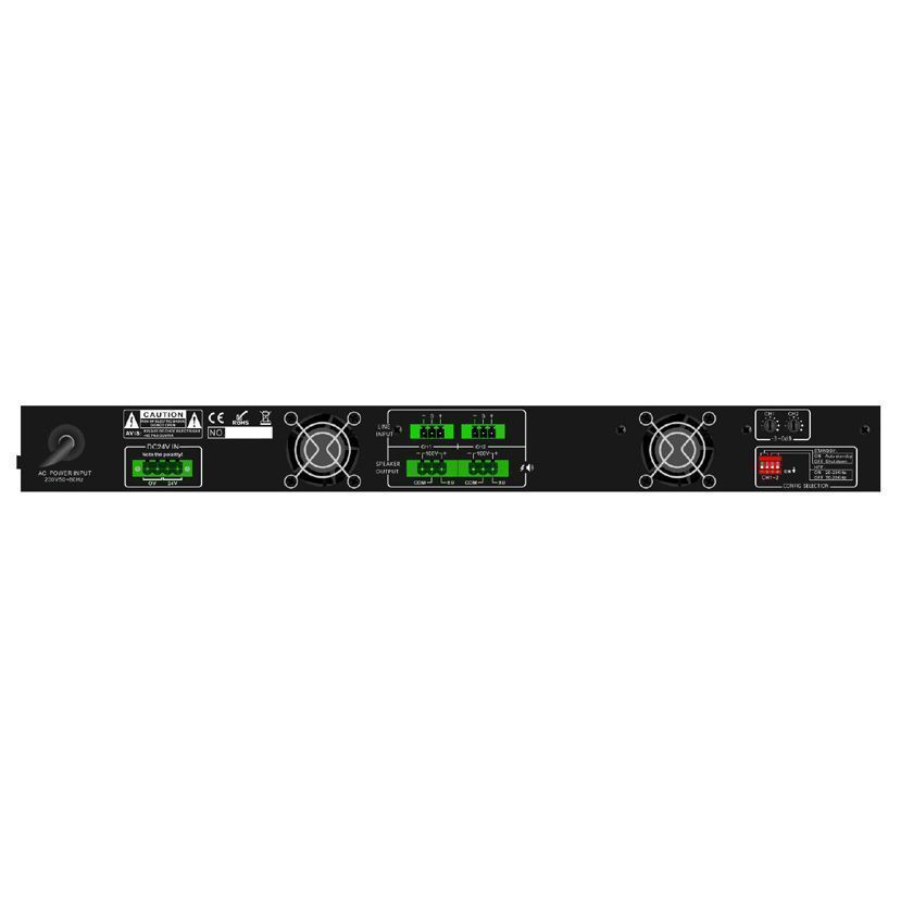 Описание модели: двухканальный усилитель мощности класса D Номинальная выходная мощность: 2x240 Вт Выход на динамик: 8 Ом и 100 В Частотный диапазон, Гц: L / H Cut OFF 20 Гц-20 кГц (+ 1 / -2 дБ); L / H Cut ON 70 Гц-10 кГц (+ 1 / -3 дБ) Вход: 0,775 В, 0 дБн, сбалансированный разъем Phoenix по двум каналам Входное сопротивление: 10 кОм Коэффициент гармонических искажений (THD): <0,1% (1 кГц / -3 дБв, 100 Вт) Соотношение сигнал/шум, дБ: > 80 дБ Размер (ШxВxГ), мм: 482х420х44 Вес, кг: 7,5 Страна-производитель: Китай