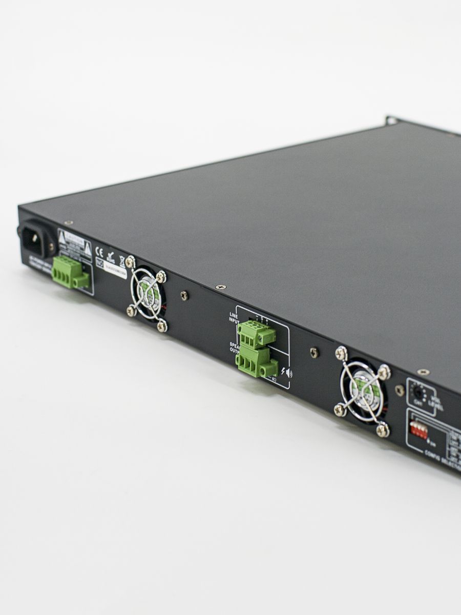CMX Audio DA-240 – это высококачественный одноканальный усилитель класса D. Особенности модели: – импульсная технология питания – минимальное энергопотребление – высота 1RU для меньшего пространства в стойке и меньшего тепловыделения – каждый вход с отдельной регулировкой усиления – каждый канал с высокочастотным фильтром – встроенная функция автоматического ожидания для экономии энергии – отдельные индикаторы для защиты, закрепления, ввода и вывода – полная защита от короткого замыкания, перегрузки, высоких температур, зажимов и постоянного тока – широкий вход переменного тока, переключаемый между 115 В и 230 В Модель CMX Audio DA-240 прекрасно подходит для использования как в громкой связи, так и в профессиональной аудиосистеме.