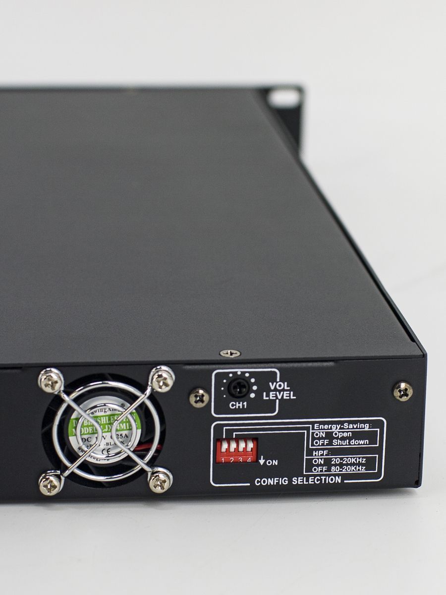 Описание модели : одноканальный усилитель мощности класса D Номинальная выходная мощность: 240 Вт Выход на динамик: 8 Ом и 100 В Частотный отклик: L / H Cut OFF 20 Гц-20 кГц (+ 1 / -2 дБ); L / H Cut ON 70 Гц-10 кГц (+ 1 / -3 дБ) Выход на динамик: 8 Ом и 100 В Вход: 0,775 В, 0 дБн, сбалансированный разъем Phoenix Входное сопротивление: 10 кОм Коэффициент гармонических искажений (THD): <0,1% (1 кГц / -3 дБв, 100 Вт) Соотношение сигнал/шум, дБ: > 80 дБ Размер (ШxВxГ): 482х420х44 мм Вес: 4,5 кг Страна-производитель: Китай