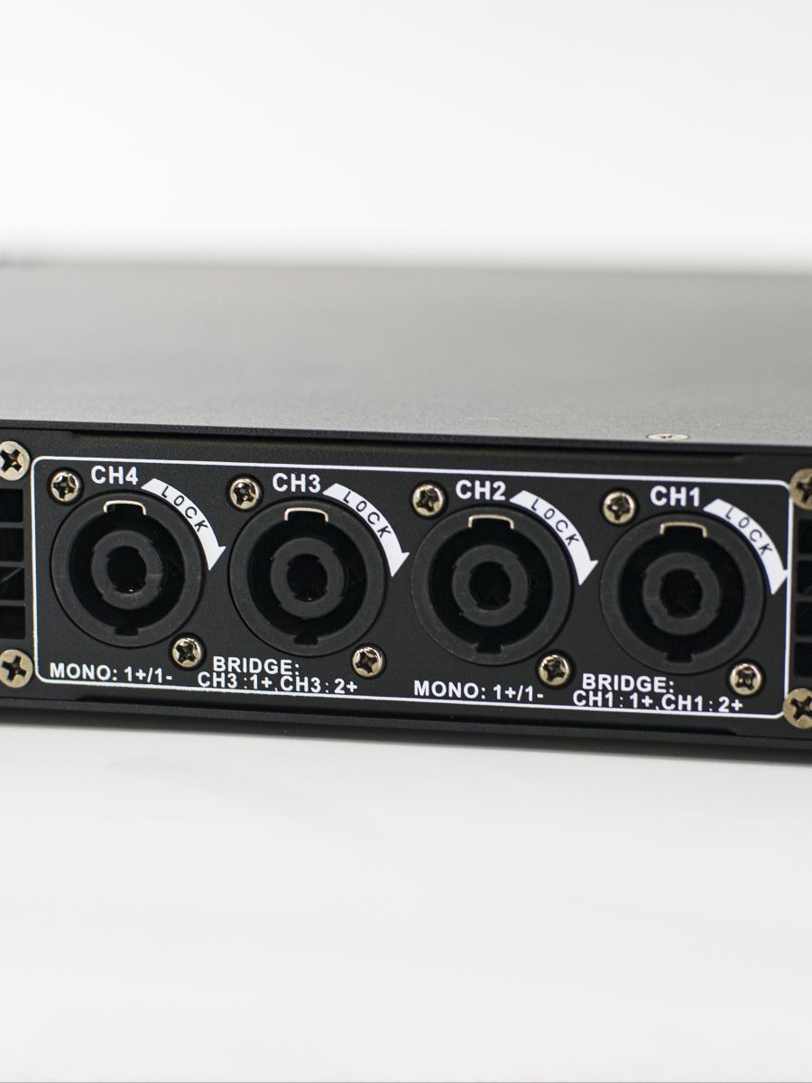 Класс: D Мощность RMS/Пик (4 Ом): 4х500 Вт Мощность RMS/Пик (8 Ом): 4х300 Вт Частотный диапазон, Гц: 20-20000 Соотношение сигнал/шум: >105 дБ Источник питания: AC 100~240 В, 50/60 Гц Размер (ШxВxГ): 484×375×45 мм Вес: 9.5 кг