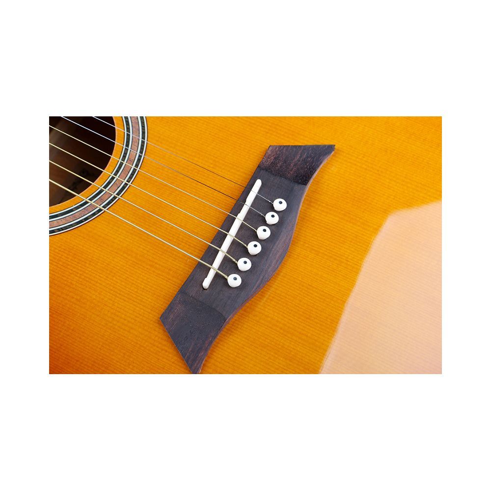 Deviser L-706 3TS – качественная и доступная по цене акустическая гитара. При производстве верхней деки использована ель, которая дает четкое и звонкое звучание, для нижней деки и обечаек выбрана универсальная порода тополь. Гриф изготовлен из махагони с прочной палисандровой накладкой. Элегантный образ инструмента дополняет глянцевое лаковое покрытие, красивый градиент на верхней деке и изящная инкрустация.   Deviser L-706 3TS станет отличным выбором для гитаристов, желающих приобрести качественный инструмент по приемлемой цене.
