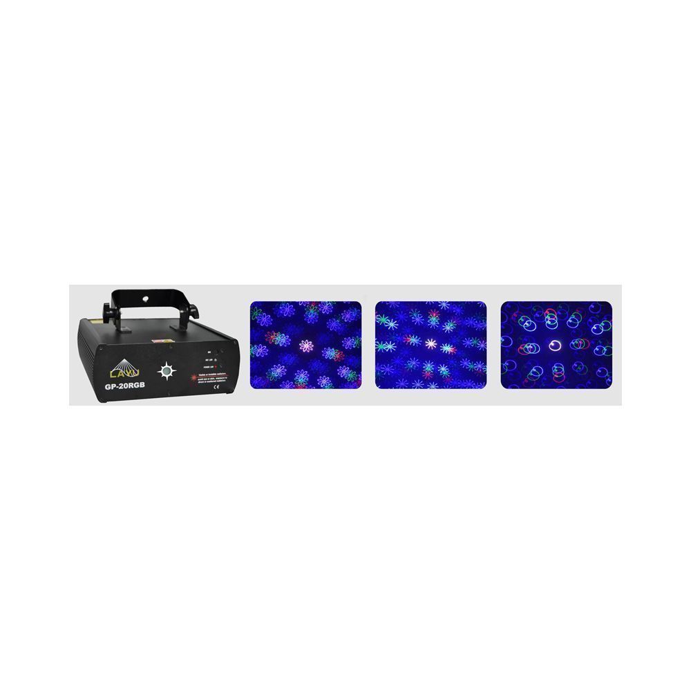 Лазер RGB, красный 150 мВт, зелёный 80 мВт, синий 600 мВт. Более 100 встроенных программ.