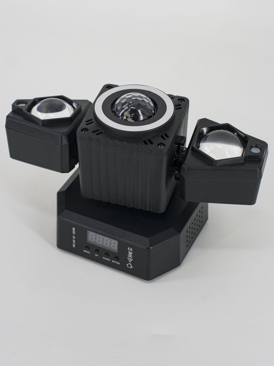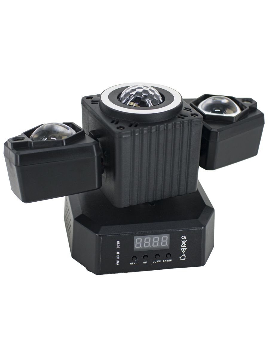 Led Star MA-E064 Прожектор с движущимся корпусом мини 4в1, Beam. Laser. Strobe. LED Strip, DMX, ведущий/ведомый, авто, звуковая активация