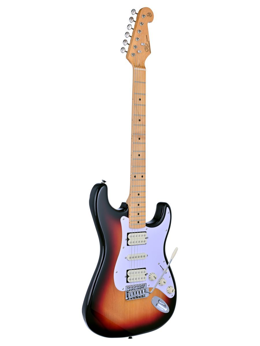 SX SST57+/HSH/3TS Электрогитара, стратокастер, корпус: липа, гриф: отборный канадский клён, накладка: отборный канадский клён, 21 лад, колки: хром, звукосниматели: H-S-H, контроллеры: 1 громкость, 2 тона, 5-позиционный переключатель, машинка: Vintage, цвет: 3 Tone Sunburst