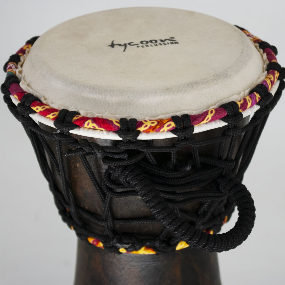 Tycoon TAJ-6 – африканский джембе 6". Сделан из красного африканского дерева, высушенного естественным образом на солнце. Мембрана из козьей кожи. Прочная нетянущаяся веревка для настройки обеспечивает стабильный строй. Уцененный выставочный экземпляр.