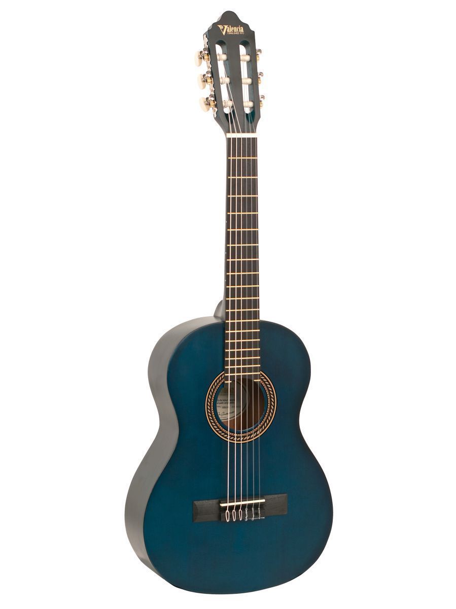 Valencia VC202TBU Гитара классическая 1/2, верхняя дека: ель, нижняя дека и обечайка: нато, гриф: махагони, накладка грифа и нижний порожек: махагони, колки: винтажные, никель, цвет Transparent Blue