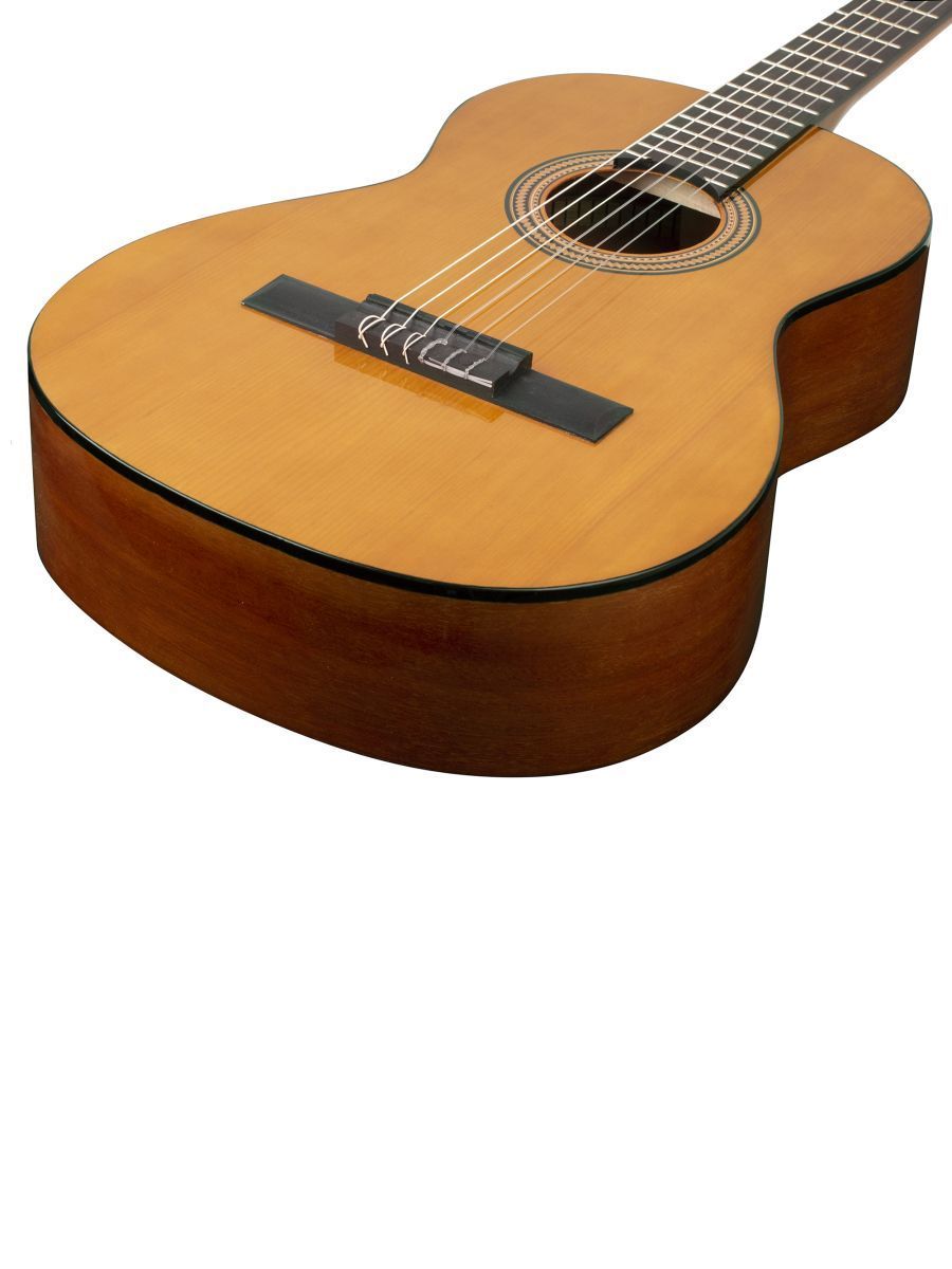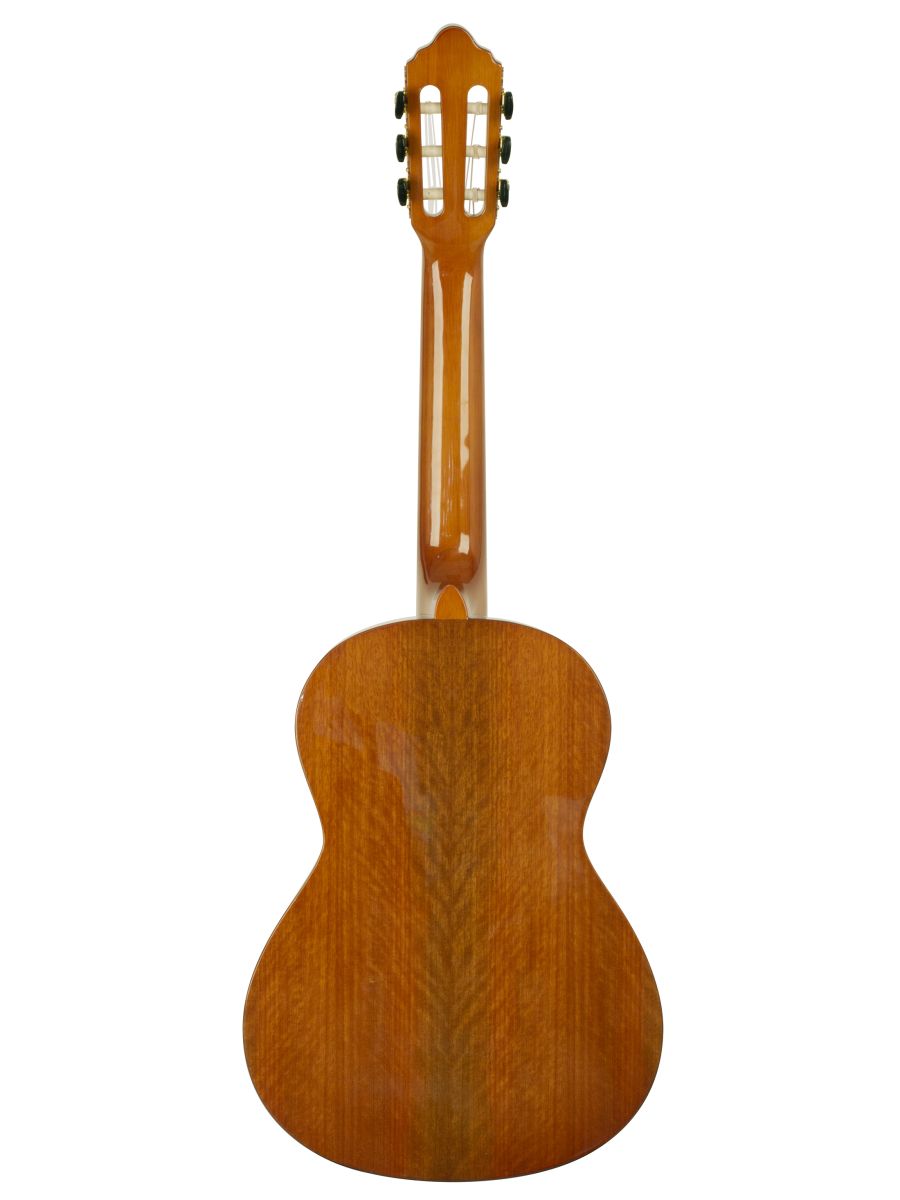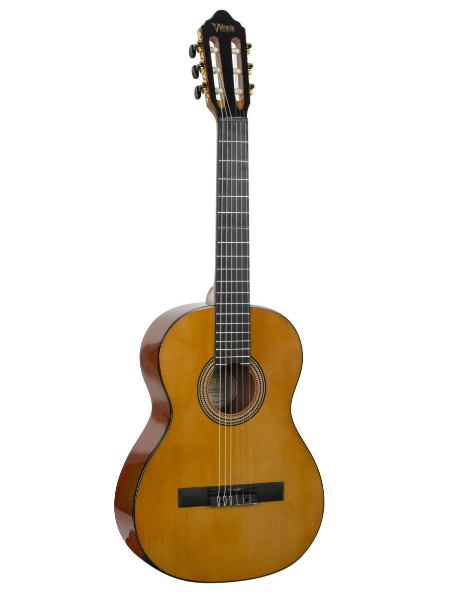 Valencia  VC263 – это качественная классическая гитара от известного производителя. Верхняя дека инструмента изготовлена из ели, материал нижней деки и обечайки – махагони. Гриф, накладка и нижний порожек сделаны из махагона. Надежная колковая механика прекрасно держит строй и обеспечивает легкость при настройке. Нейлоновые струны, установленные на комфортной для игры высоте, делают гитару удобной даже для самых юных исполнителей. Натуральные материалы, высокое качество сборки, глянцевая отделка – все это дарит инструменту насыщенный тон и превосходный сустейн. Отличительной особенностью инструмента является роскошнный внешний вид. Классическая гитара VC263 станет хорошим вариантов как для начинающих музыкантов, так и для опытных исполнителей.