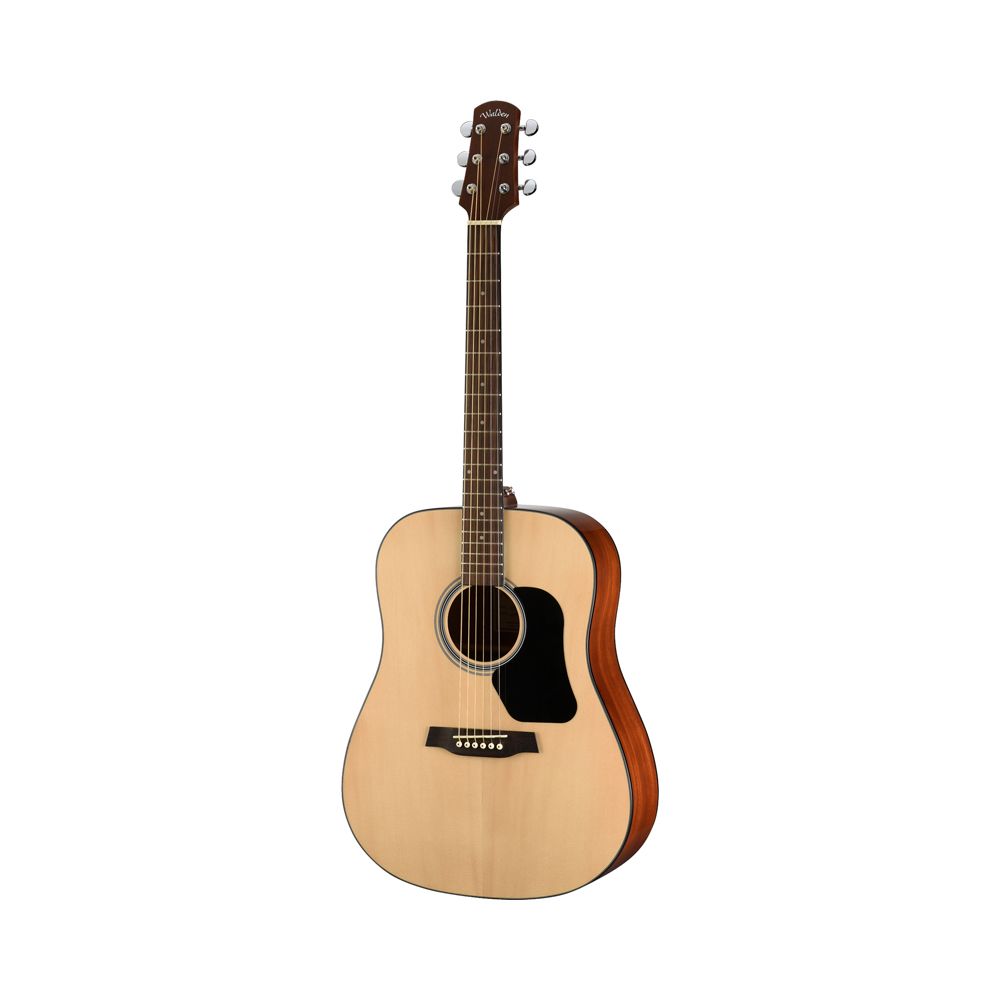 Walden D450W – это качественная акустическая гитара  с массивным корпусом Dreadnought. Модель обладает мощным, громким и богатым звучанием. Верхняя дека инструмента выполнена из массива ели, материал нижней деки и обечайки – махагони. Зубчатая крестообразная распорка корпуса делает инструмент невероятно прочным и долговечным. Гриф из палисандра оснащен анкерным стержнем с двусторонним креплением. Армирование грифа стекловолокном обеспечивает исключительную стабильность и удобство игры. Накладка на гриф изготовлена из палисандра. Литые хромированные колки прекрасно держат строй. Гитара выполнена в натуральном цвете и покрыта лаком. Модель поставляется в комплекте с прочным чехлом. Акустическая гитара Walden D450W – это инструмент исключительного качества по доступной цене.